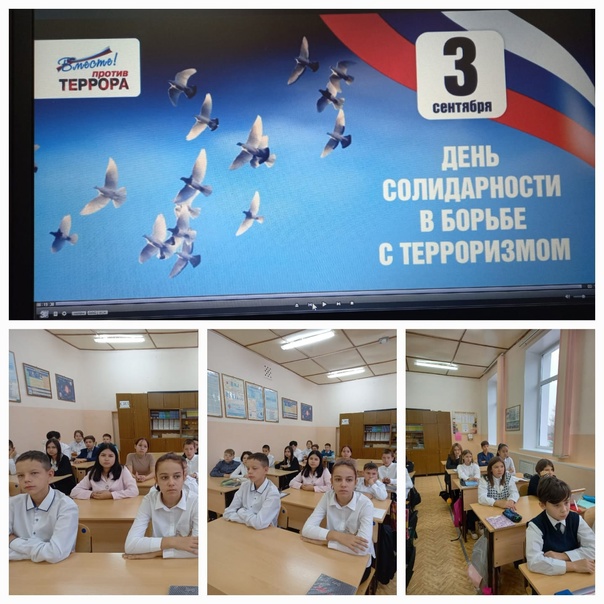 Сегодня в нашей школе прошли классные часы, посвященные Дню солидарности в борьбе с терроризмом. Эта памятная дата России была установлена в 2005 году Федеральным законом «О днях воинской славы России».
