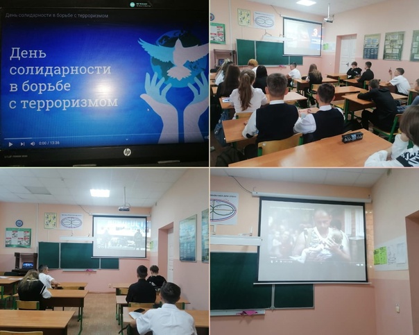 В ходе классных часов ребята посмотрели кадры хроники о действиях террористов в Москве, Беслане, США, а после почтили минутой молчания жертв террора. Затем состоялось обсуждение основных правил поведения в условиях угрозы террористических актов.